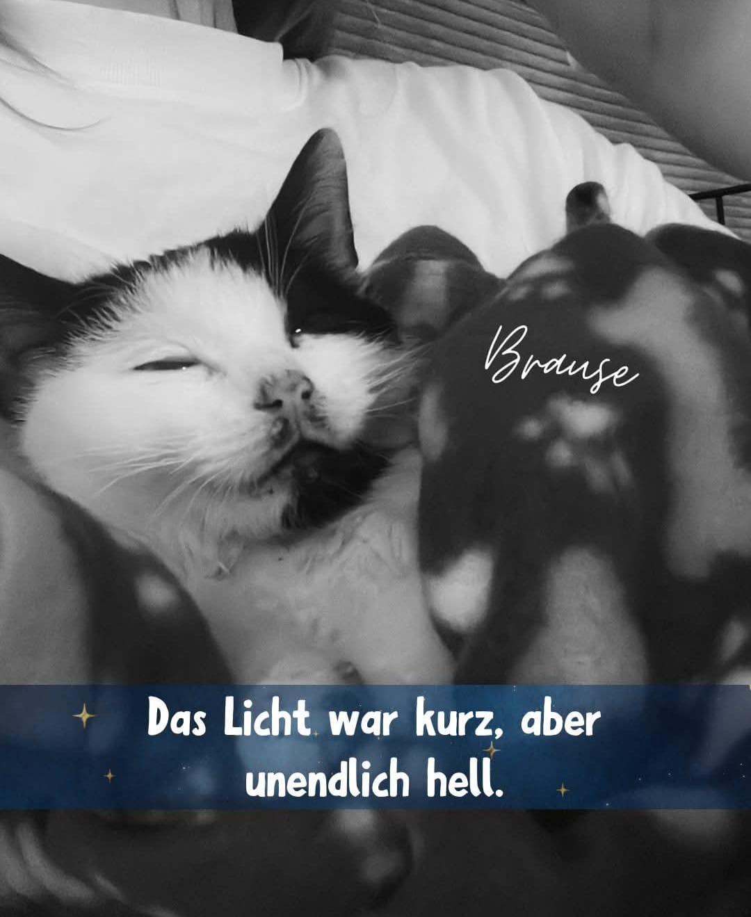 Als du kleines süßes Wesen bei uns abgegeben wurdest, warst du immer ganz aufgeplüscht. So entstand dein Name Brause. Brause, ein Name der uns allen im Gedächtnis bleiben wird, den wir nicht wieder vergeben werden, denn es ist nur dein Name.