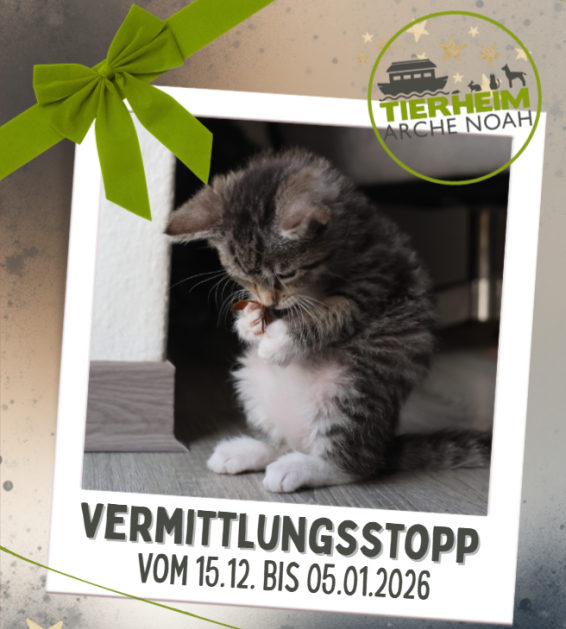 Vom 15. Dezember 2025 bis einschließlich 5. Januar 2026 vermitteln wir keine Tiere.