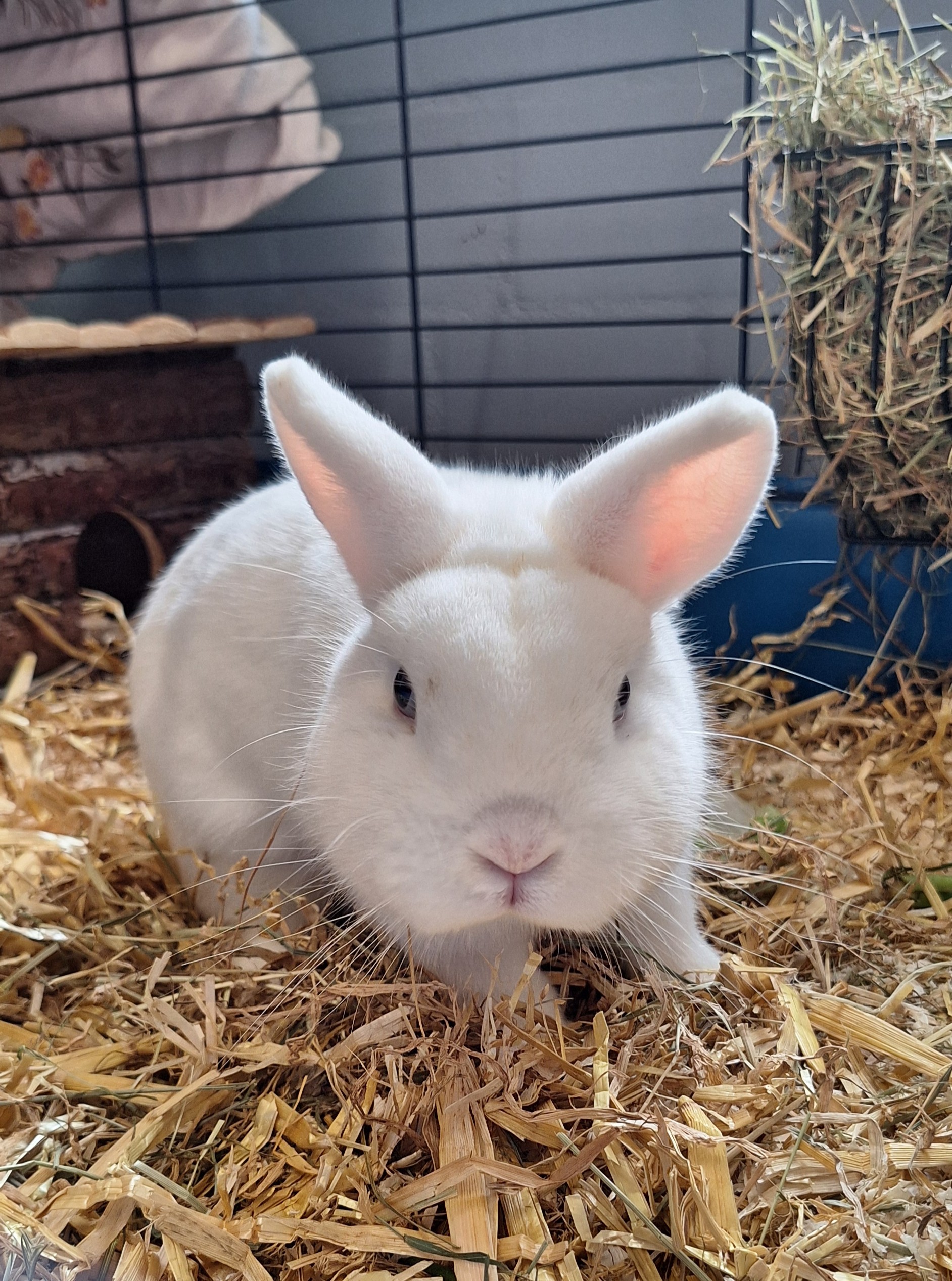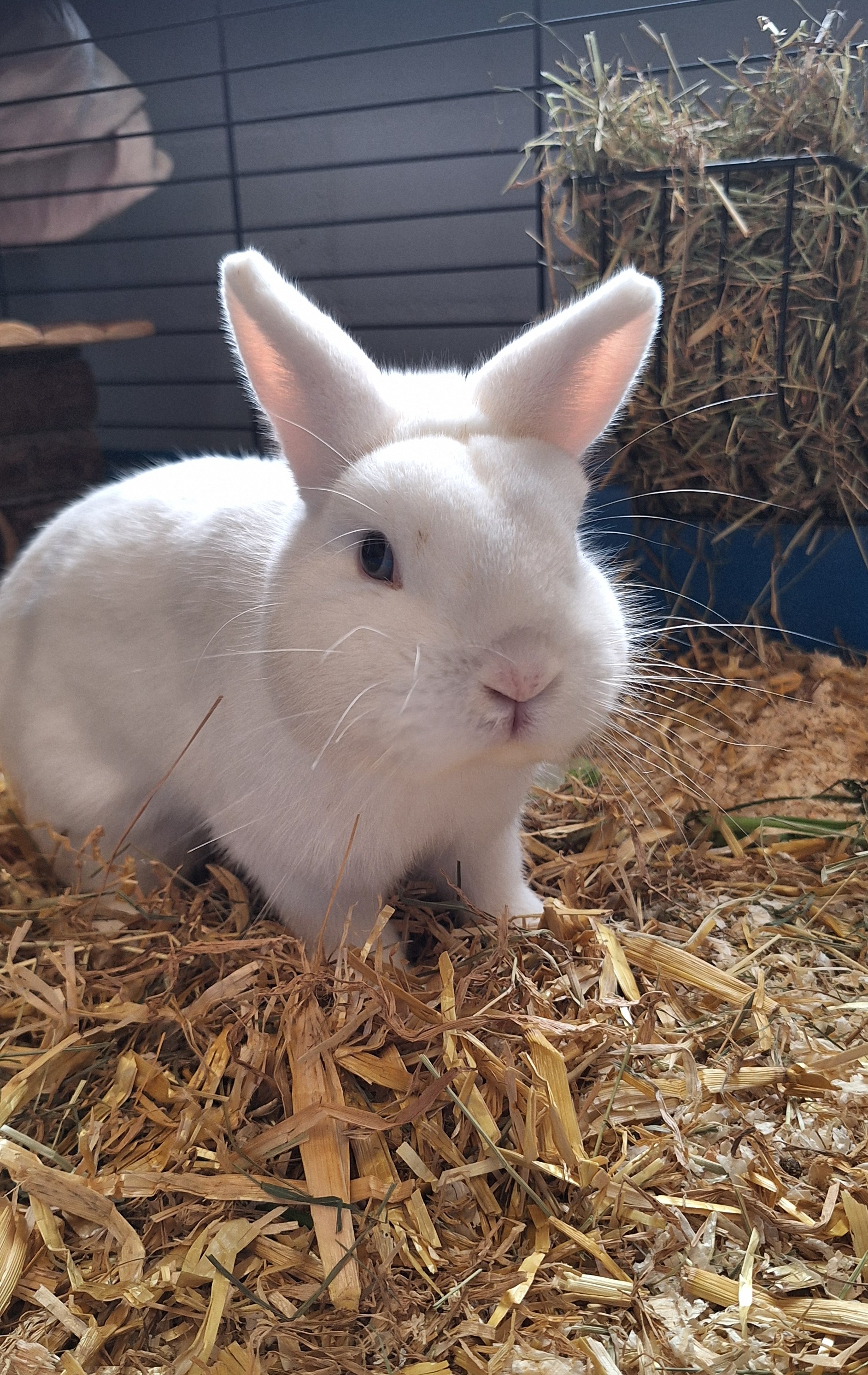 Die beiden Hermelin Kaninchen kamen als Abgabetiere zu uns. Bei dem vorherigen Besitzer haben beiden getrennt gelebt, da die Geschwister nicht kastriert sind. Leider wurden die zwei für den Transport zu uns gemeinsam in eine Transportbox gesetzt. Da sich Kaninchen natürlich auch während so eines kurzen Zeitraumes verpaaren können, wissen wir zum aktuellen Zeitpunkt noch nicht genau, ob Erbse nicht vielleicht tragend ist. Dies werden wir tierärztlich noch mal abklären lassen.