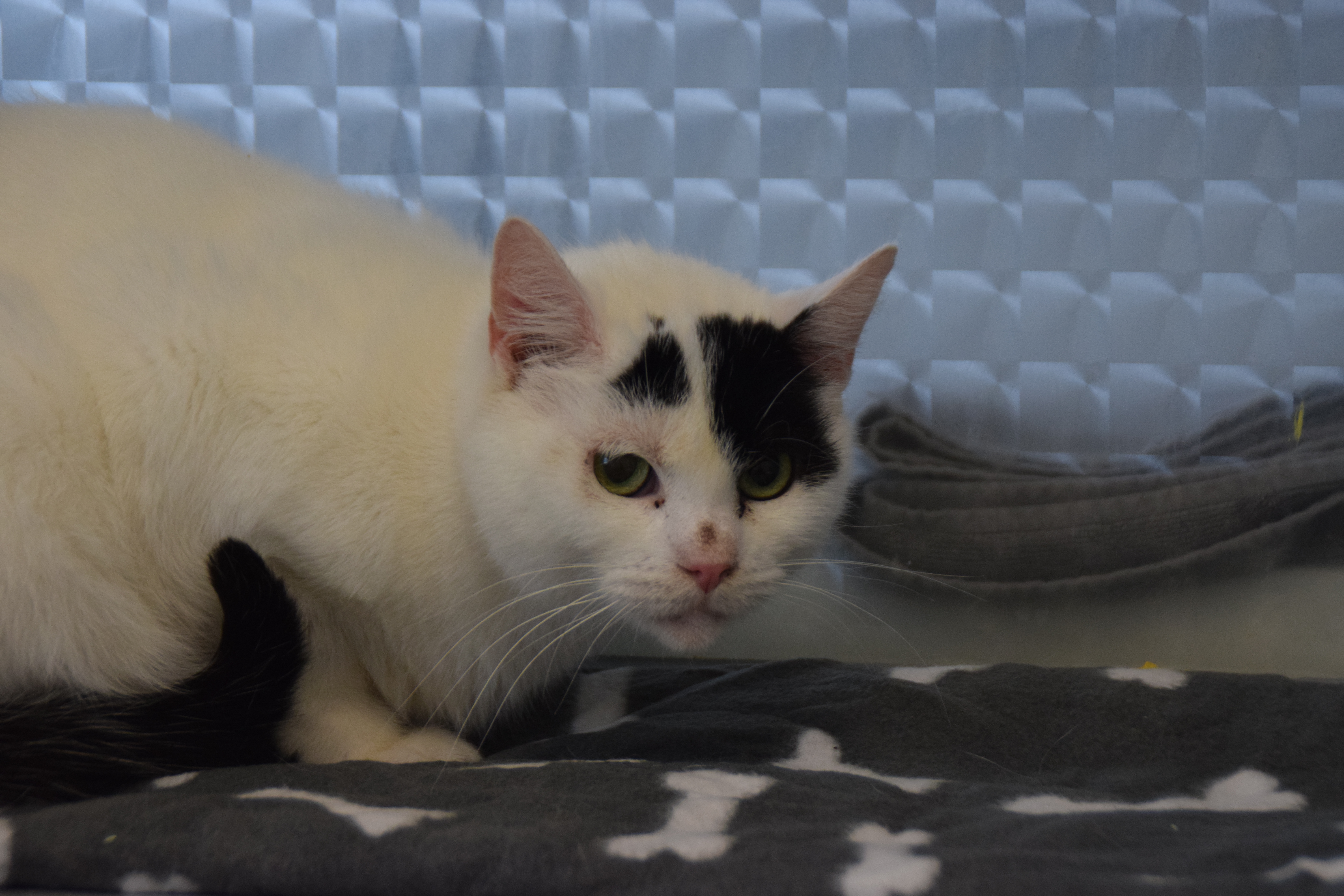 Bente kam durch eine Sicherstellung zu uns. Als sie zu uns kam, war sie tragend. Nun sind ihre Kitten alt genug, um alleine zurecht zukommen und Bente sucht ein eigenes Zuhause. Bente ist uns Menschen gegenüber noch recht zurückhaltend, wobei sie mit Leckerchen und Geduld zutraulicher wird. Streicheln lässt die hübsche Katze sich noch nicht so gerne, wobei es Momente gibt, in denen sie ihre Angst vergisst und doch mal Köpfchen gibt. Ob Bente sich mit Artgenossen verträgt, können wir aktuell noch nicht einschätzen.