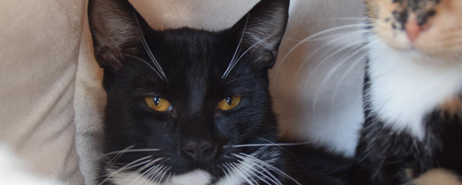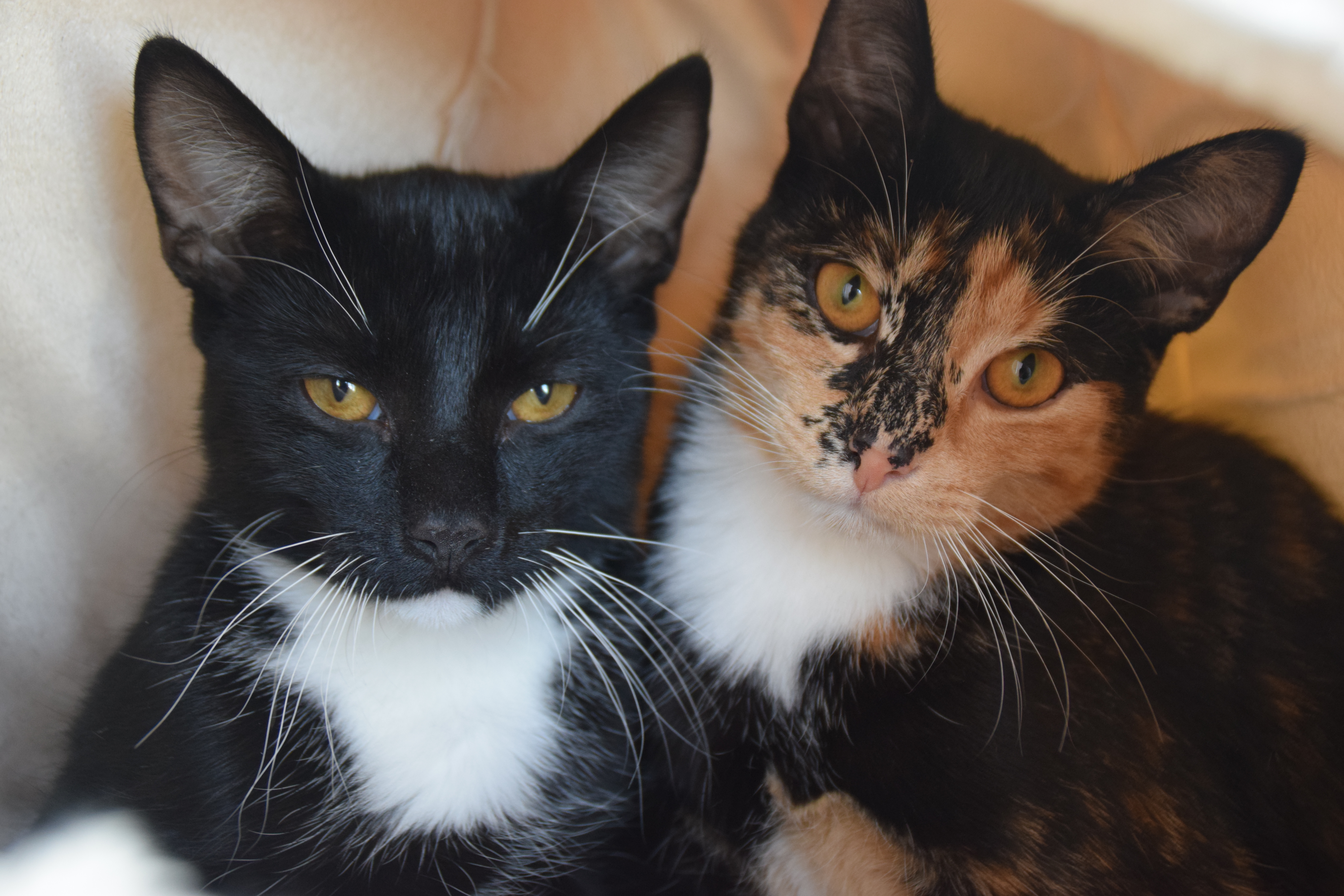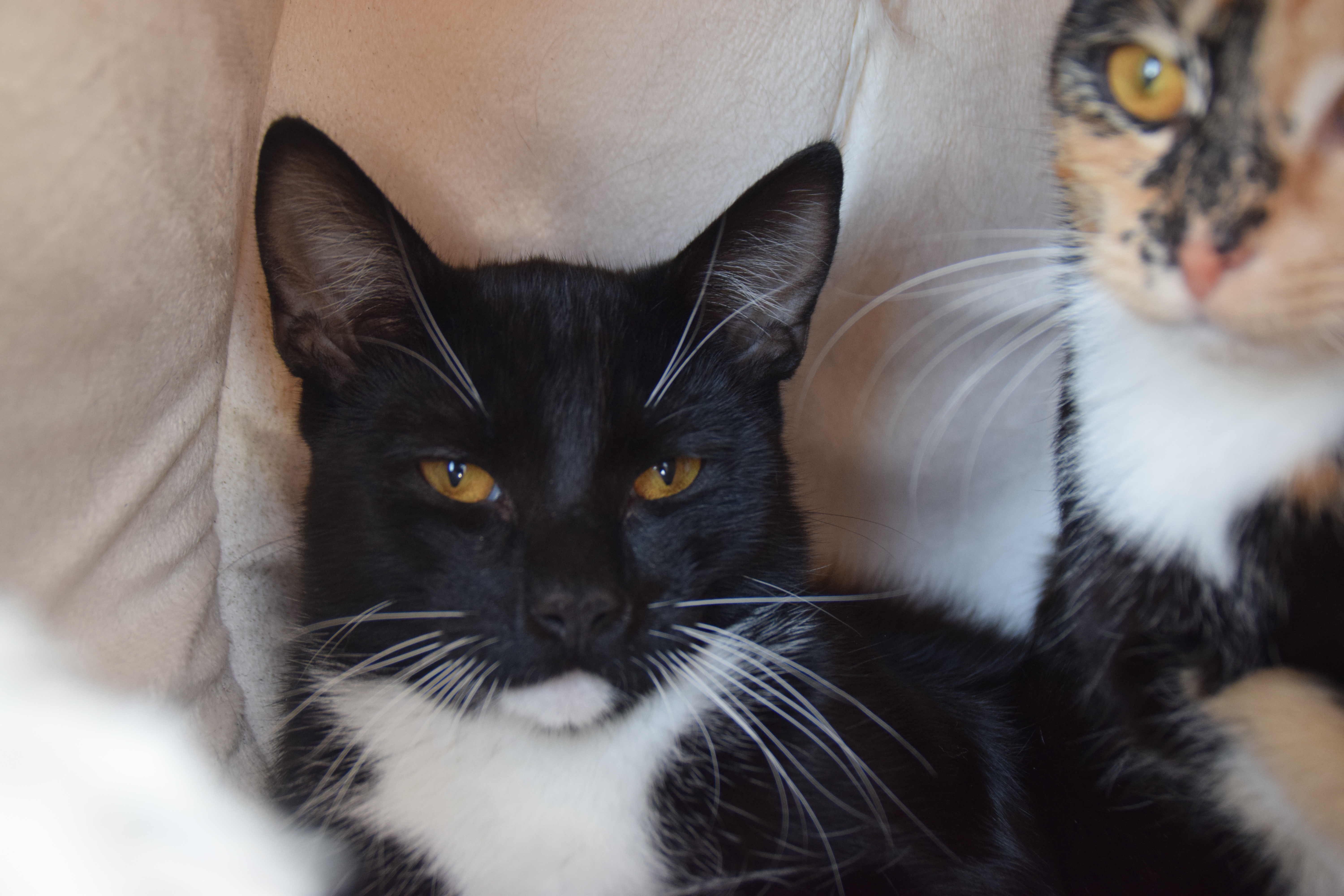 Coco und Snickers kamen als Abgabekatzen zu uns. Coco hat im alten Zuhause, vermutlich aus Stress durch das mit im Haushalt lebende Kind, immer wieder außerhalb der Toilette uriniert. Hier hat er bis jetzt nur einmal auf eine Decke gepinkelt, ansonsten benutzt er zuverlässig das Katzenklo. Er ist noch etwas zurückhaltend und versteckt sich viel. Allerdings kuschelt er in seiner Höhle schon super gerne mit uns. Auch gespielt wird schon ab und an.