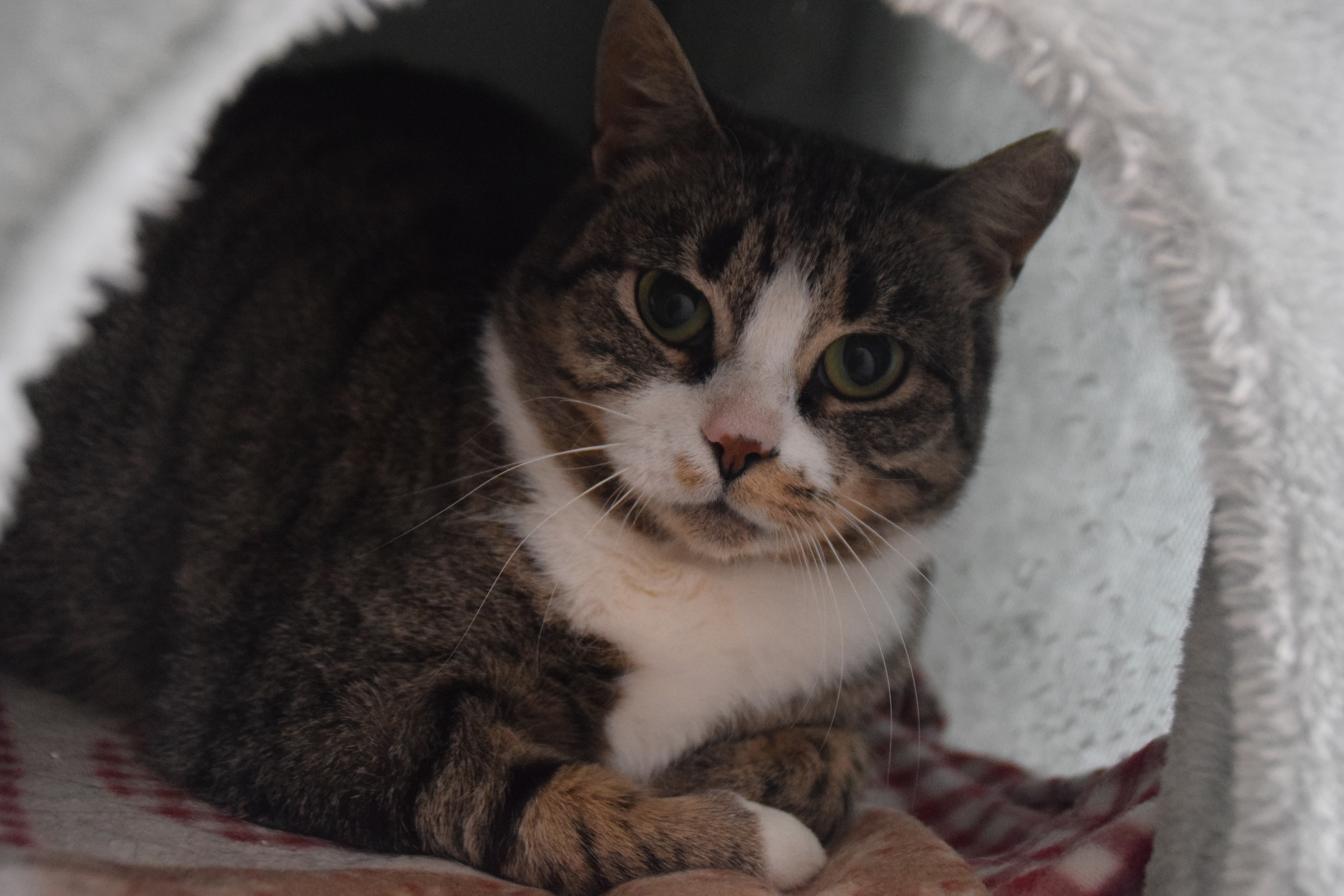 Crepes kam als Fundkatze zu uns. Sie ist noch recht schüchtern und versteckt sich noch recht viel. Mit Geduld wird die hübsche Katze sicherlich noch zutraulicher. Ob Crepes mit Artgenossen verträglich ist, können wir aktuell noch nicht sagen, am Gitter zeigt sie sich allerdings sehr interessiert. Crepes möchte im neuen Zuhause gerne Freigängerin werden.