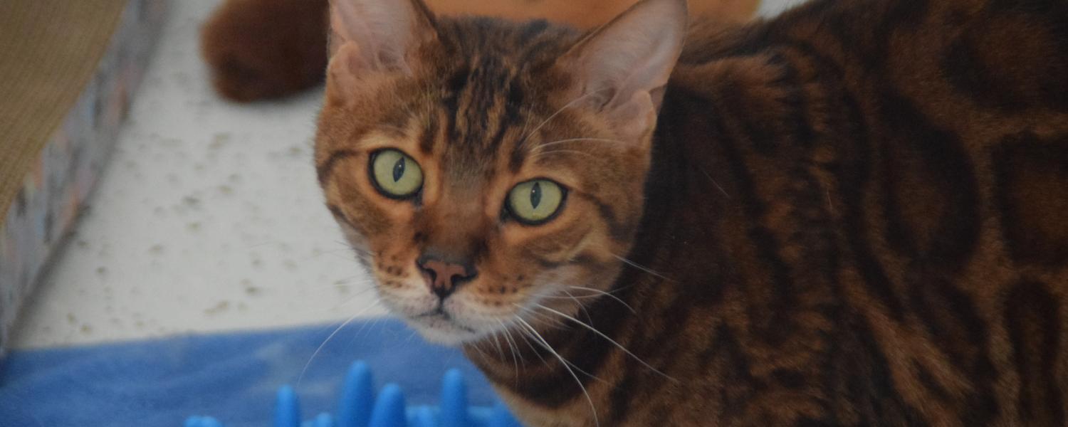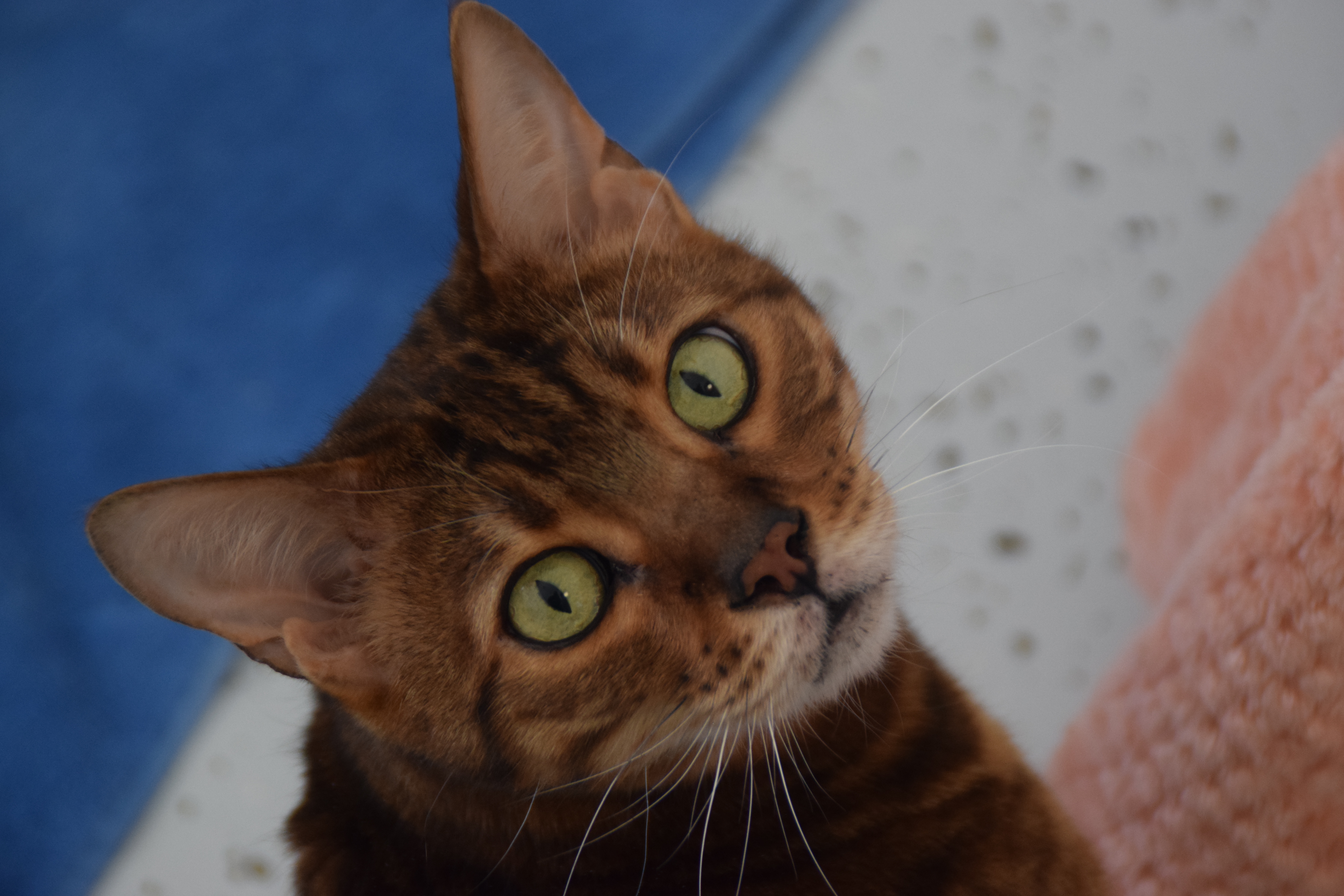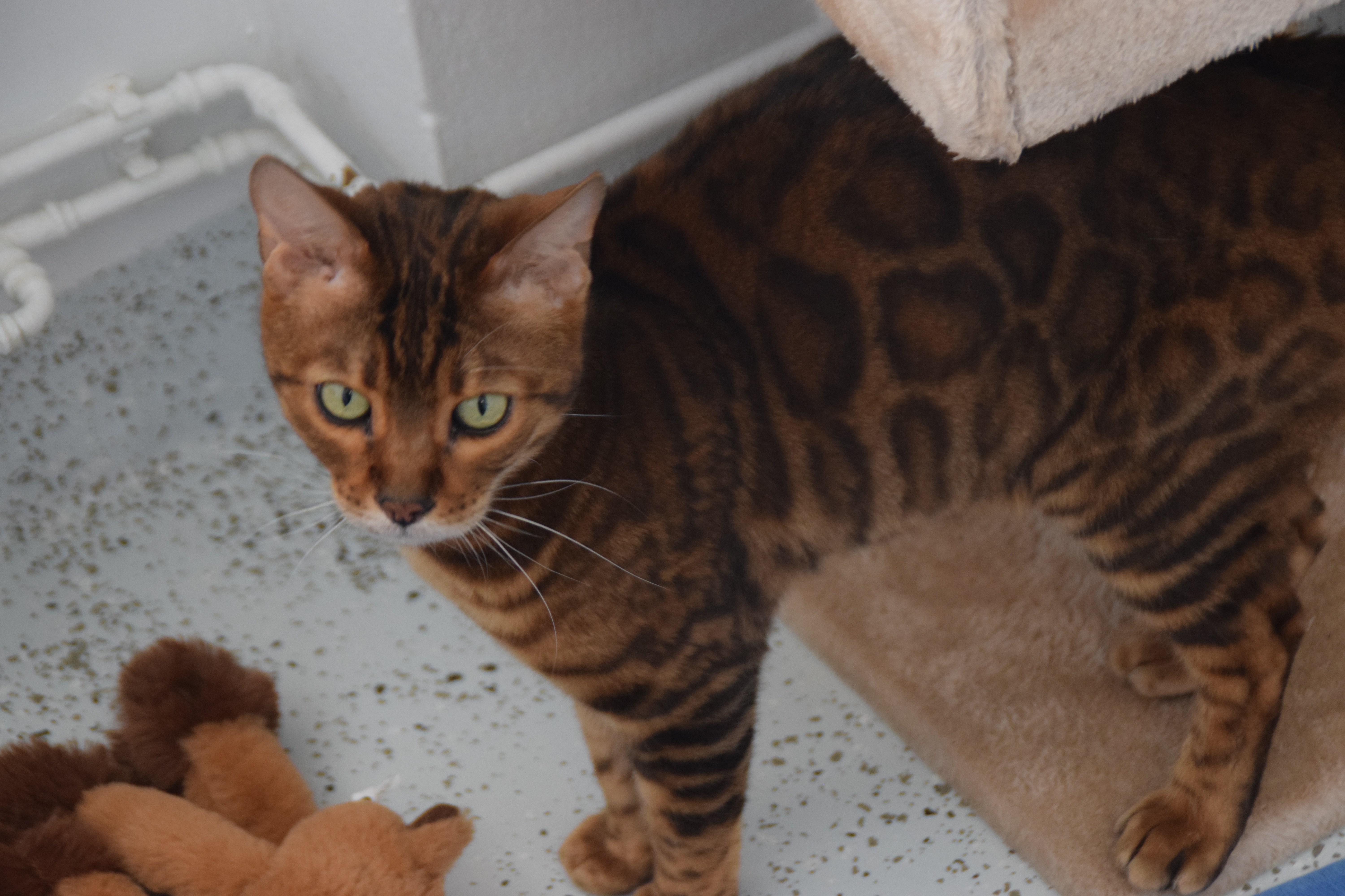 Maximo kam als Abgabekater zu uns, weil er sich mit den vorhandenen Katzen nicht mehr verstanden hat. Der hübsche Kater zeigt sich noch etwas zurückhaltend, taut aber schon immer mehr auf. Von seinem ehemaligen Halter wird er als sehr verschmust und verspielt beschrieben. Er ist typisch Bengal sehr fordernd und benötigt viel Auslastung und Beschäftigung.