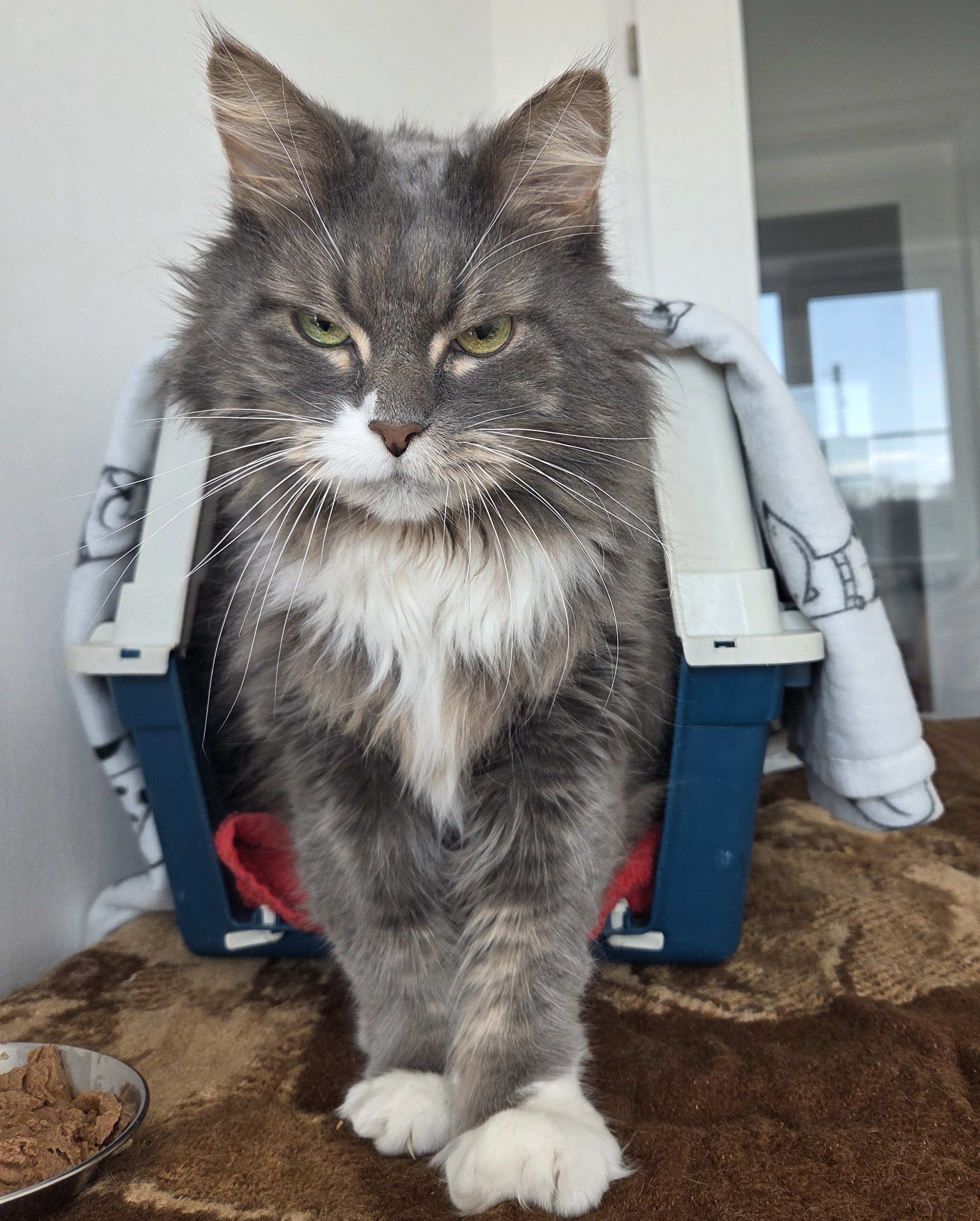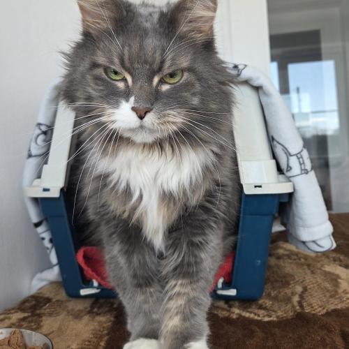 Sky kam gemeinsam mit Shea zu uns, da der Halter verstorben ist. Sky ist ein sehr verschmuster und liebesbedürftiger Kater. Er ist sehr sensibel und braucht in neuen Situationen recht lange um sich sicher zu fühlen. Schnelle Bewegungen und laute Geräusche findet er sehr gruselig und zieht sich bei Hektik schnell zurück. Wenn er vertrauen gefasst hat, liebt er es zu kuscheln. Auch zum Spielen lässt der stattliche Kater sich gerne mal überreden. Mit fremden Artgenossen zeigt er sich bis jetzt sehr ängstlich, weshalb er entweder alleine oder gemeinsam mit Shea ausziehen soll, wobei er und Shea nicht aneinander hängen.