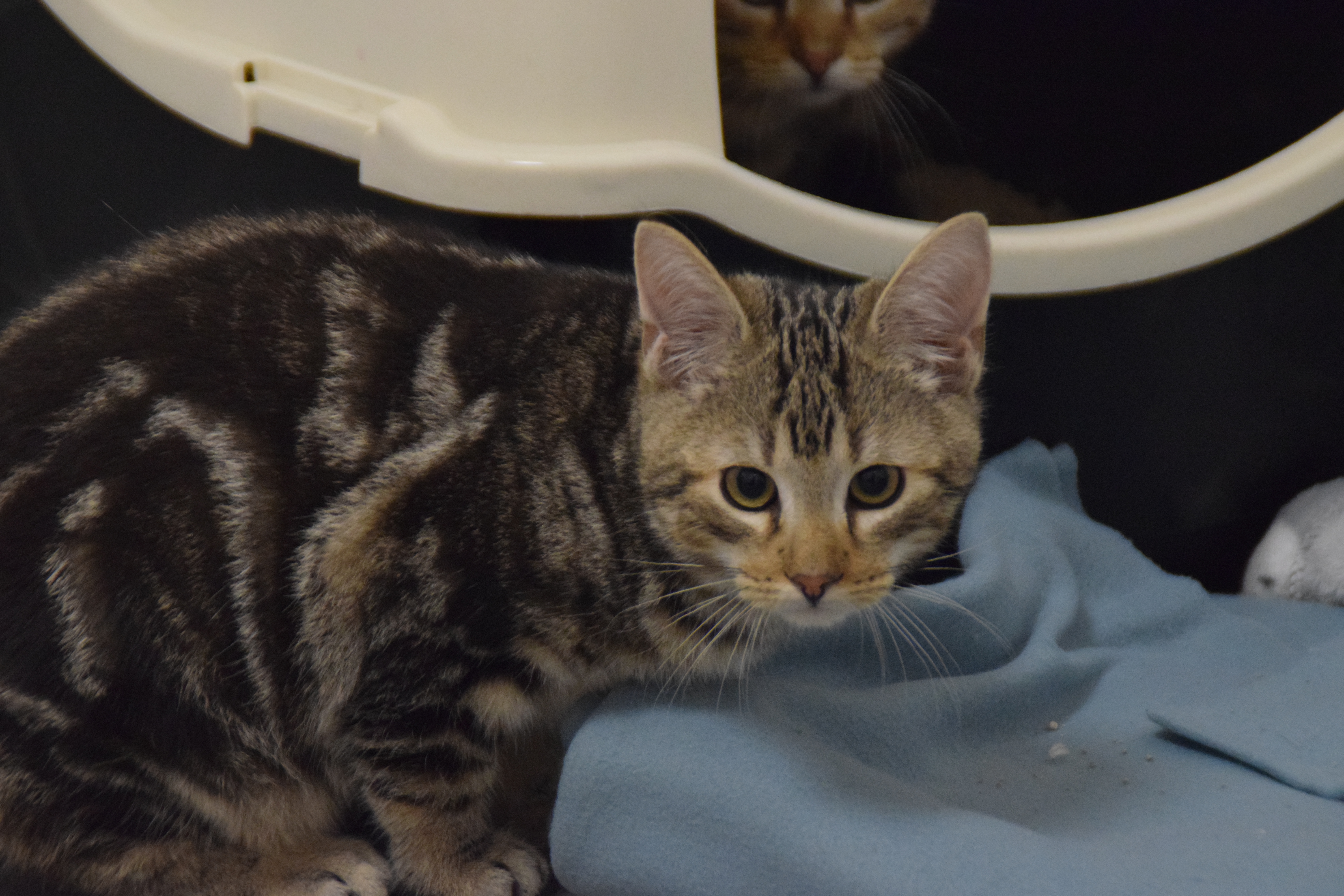 Alle unsere Kitten leben in Gruppen, damit sie die Möglichkeit haben, sich auf sozialer Ebene gut zu entwickeln. Vor allem bei Kitten spielen Artgenossen eine wichtige Rolle. Deshalb möchten wir Spongebob nur mit einem weiteren Kitten oder zu einer bereits im Haushalt lebenden Katze im ähnlichen Alter vermitteln.