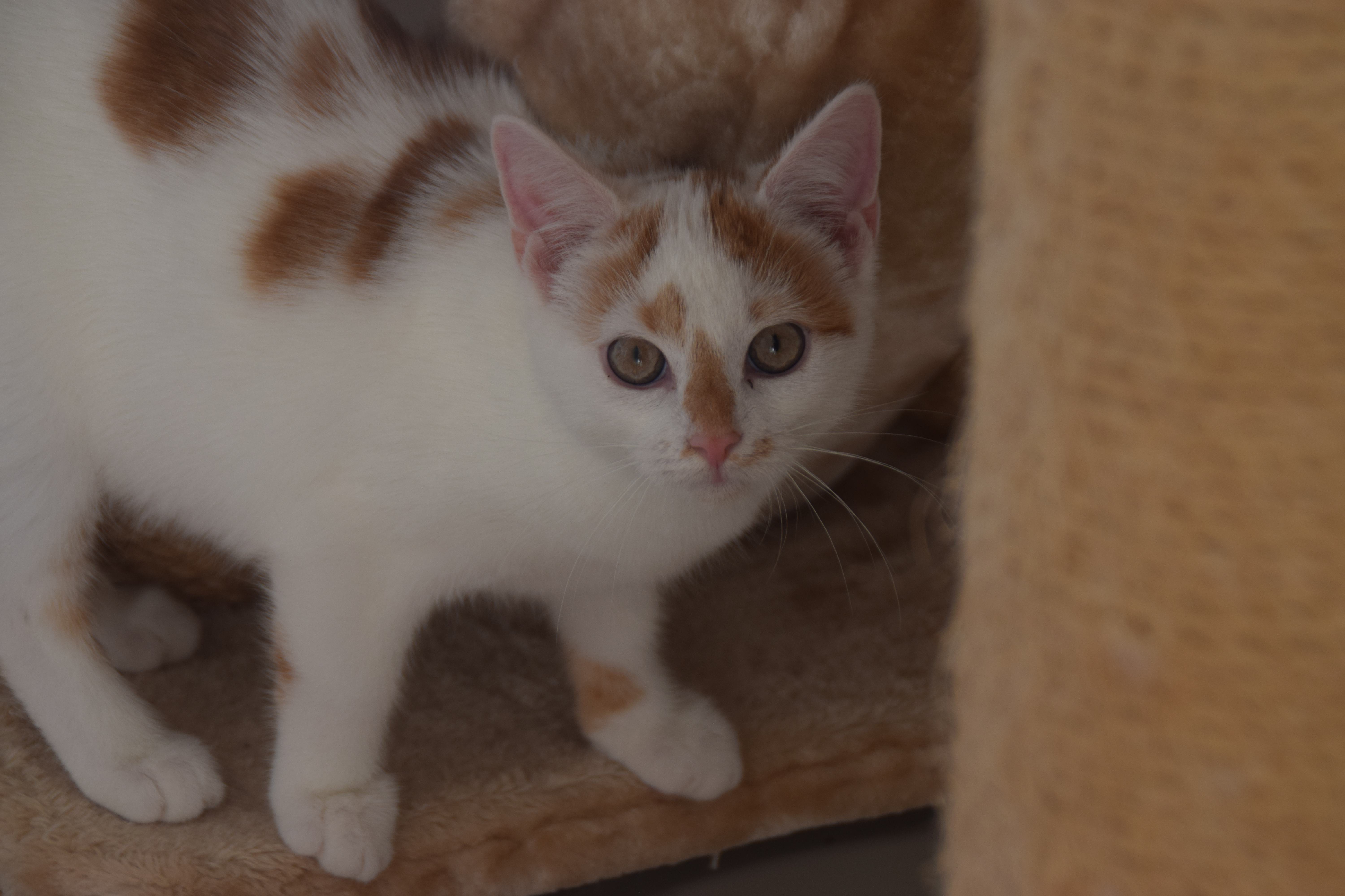 Alle unsere Kitten leben in Gruppen, damit sie die Möglichkeit haben, sich auf sozialer Ebene gut zu entwickeln. Vor allem bei Kitten spielen Artgenossen eine wichtige Rolle. Deshalb möchten wir Sprite nur mit einem weiteren Kitten oder zu einer bereits im Haushalt lebenden Katze im ähnlichen Alter vermitteln.