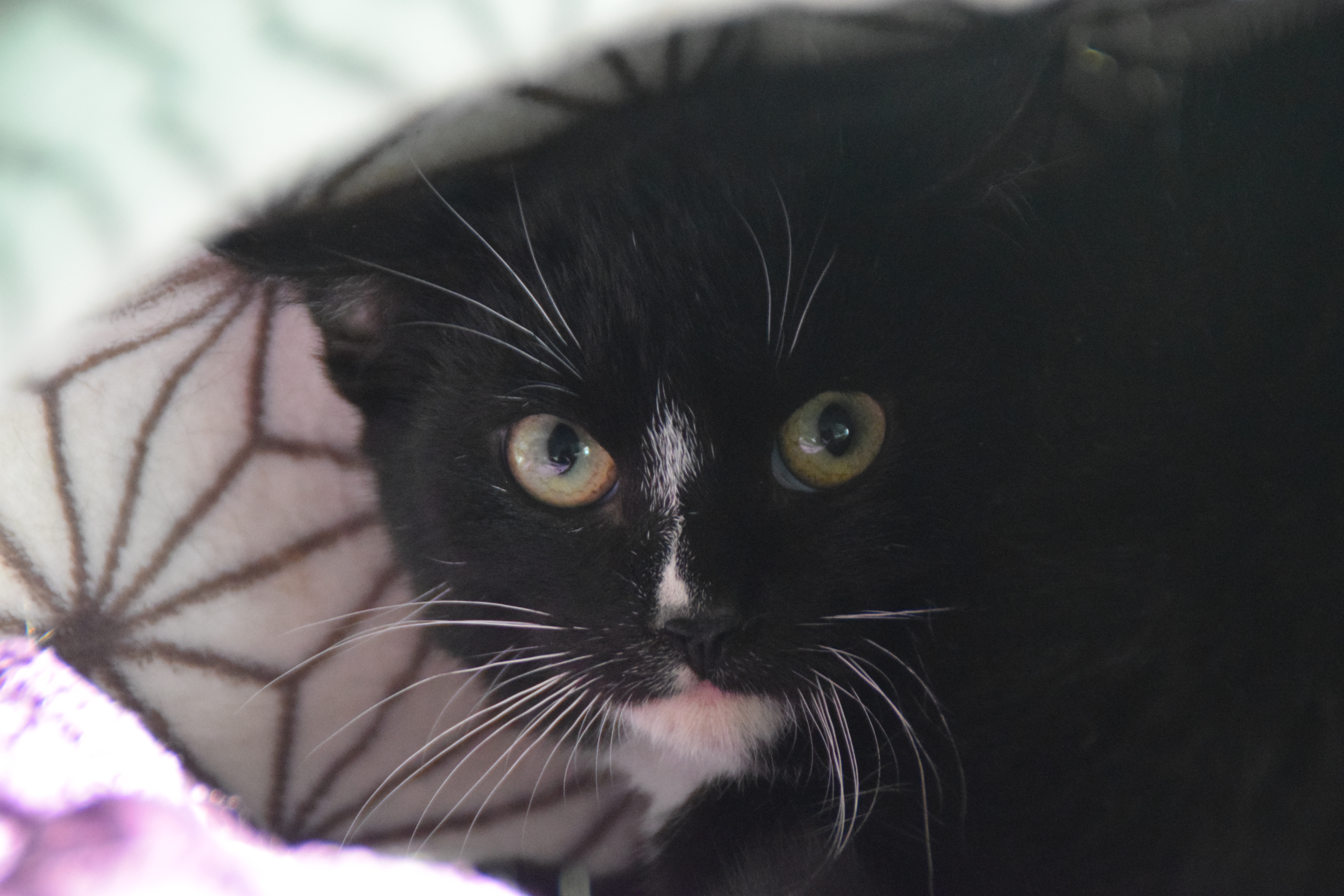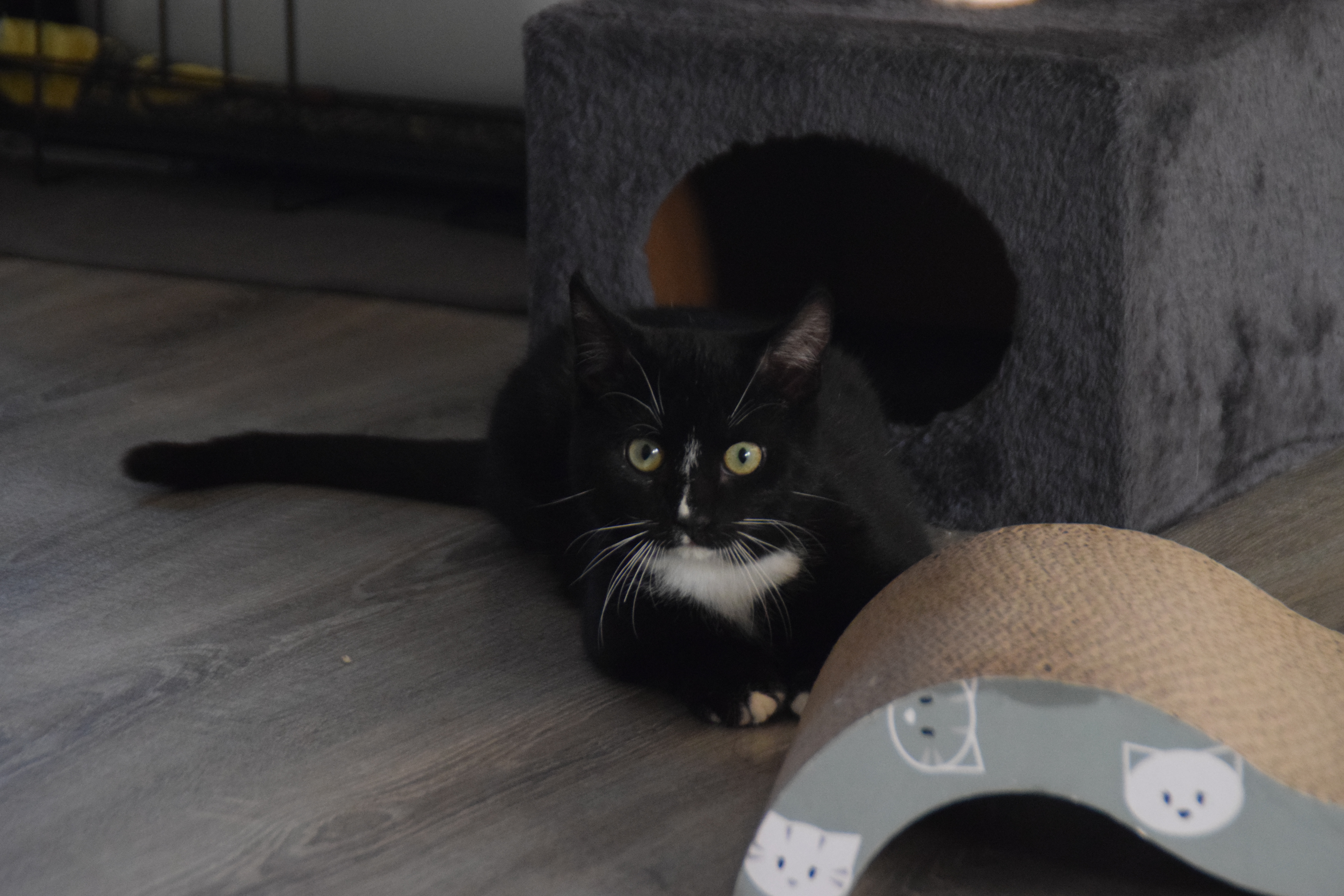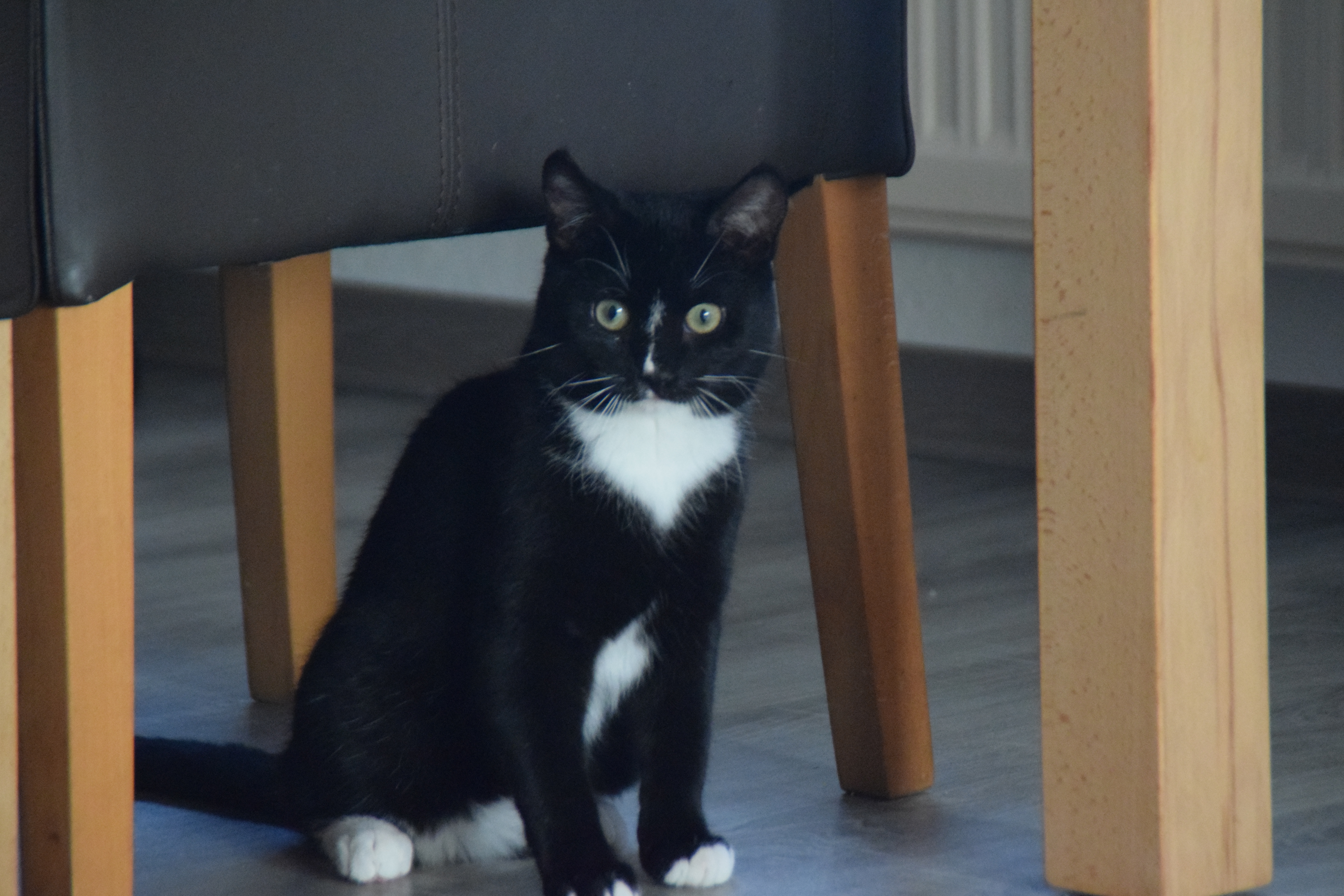 Theo kam als Fundkatze zu uns. Er ist Menschen gegenüber noch recht zurückhaltend und versteckt sich viel. Er war für mehrere Wochen bei einer Tierpflegerin gemeinsam mit Salem auf Pflege. Dort hat er tolle Fortschritte gemacht, er lässt sich in seiner Höhle kuscheln, schnurrt dabei wie ein Weltmeister und tobt mit immer weniger Angst durch die Wohnung.