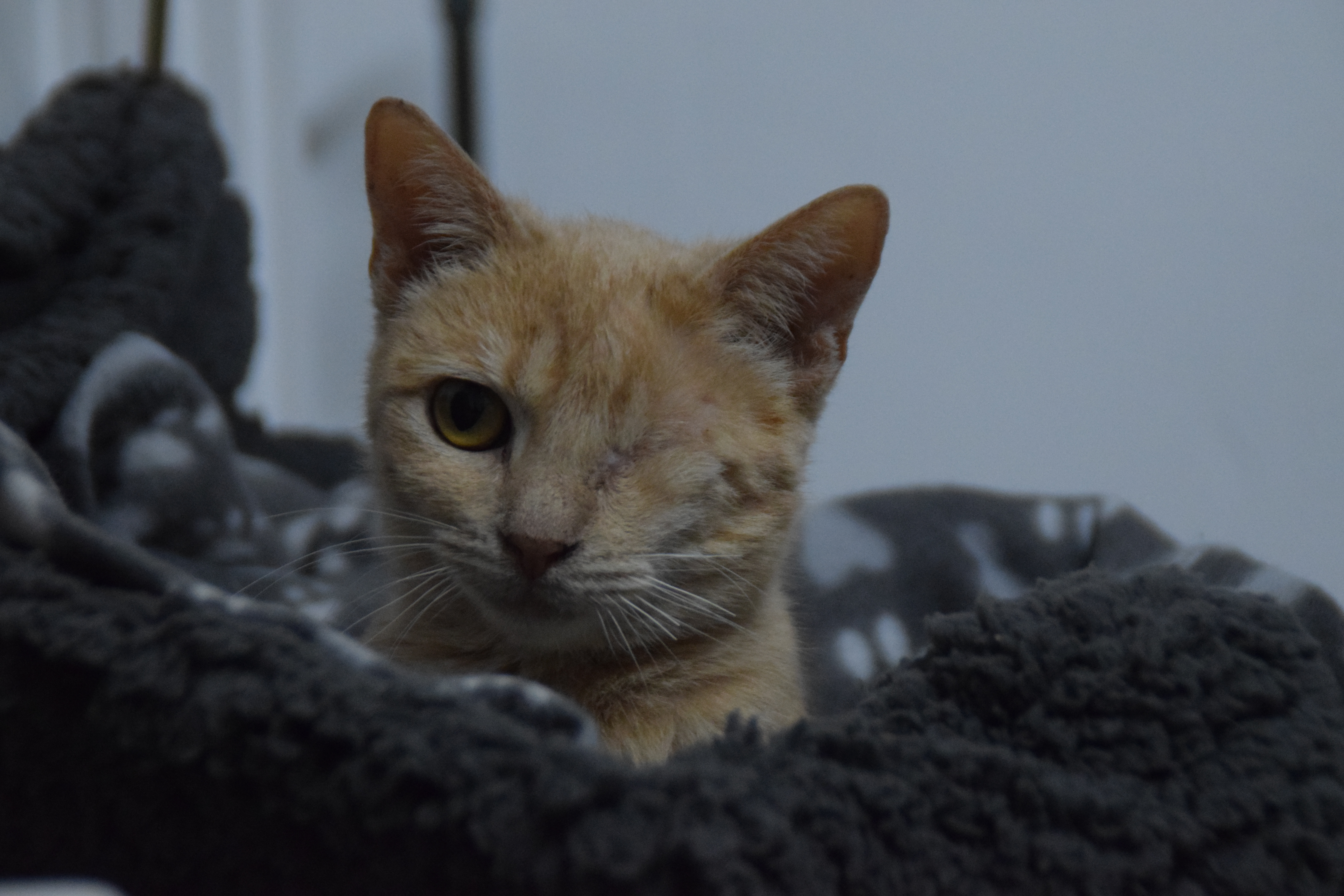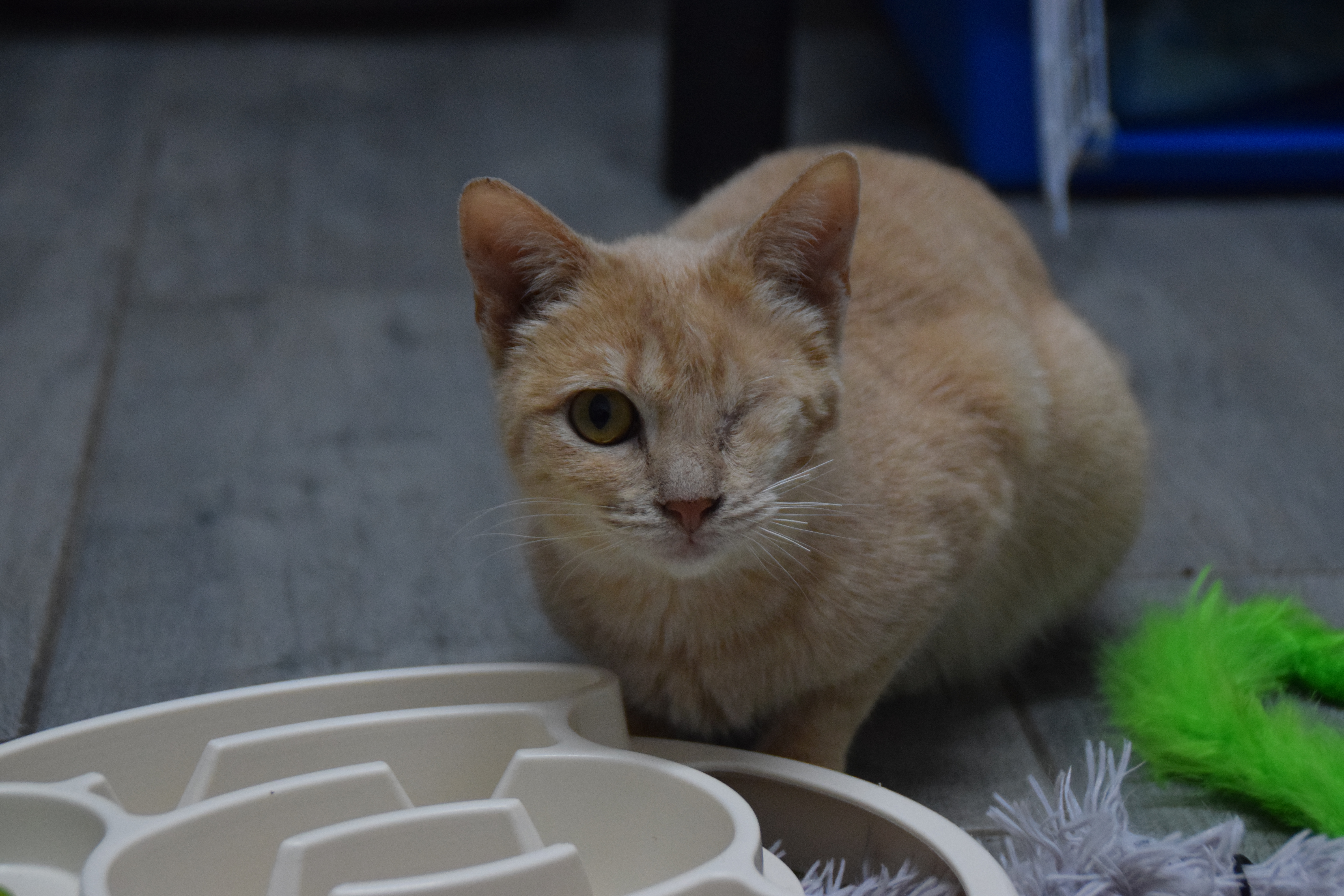 Celeste kam aus einer großen Sicherstellung zu uns ins Tierheim. Als sie zu uns kam, war sie hochtragend. Nachdem sie liebevoll ihre Kitten großgezogen hat, sucht sie nun ein eigenes Zuhause. Sie ist Menschen gegenüber noch ziemlich zurückhaltend und braucht Zeit um vertrauen zu fassen. Wenn es um Essen geht, vergisst die zarte Katze ihre Angst immer öfter und lässt sich auch schonmal kurz streicheln. Mit Artgenossen ist sie sehr gut verträglich und würde sich über Artgenossen im neuen Zuhause sicher freuen, wobei sie im Umgang mit Artgenossen eher vorsichtig ist und nicht zu sehr bedrängt oder untergebuttert werden möchte. Obwohl Celeste nur ein Auge hat, kommt sie sehr gut klar und orientiert sich problemlos. Nach der Kastration möchte Celeste in den Freigang.