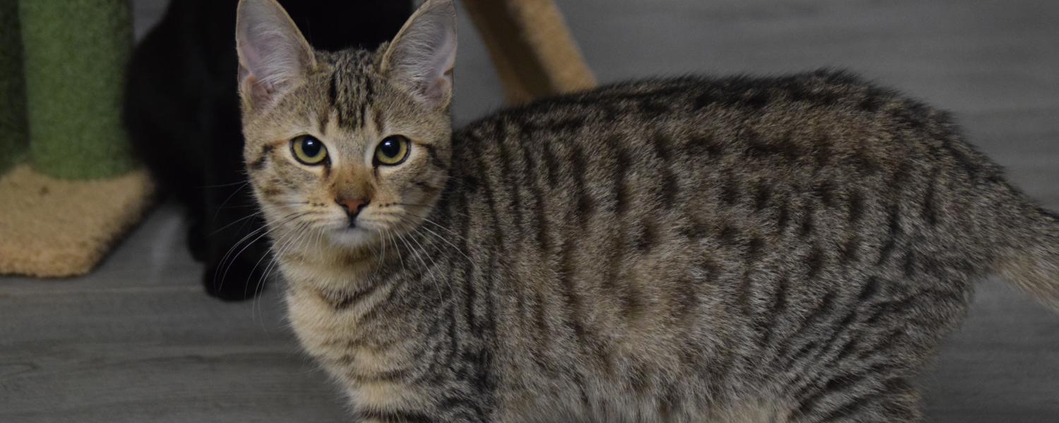 Alle unsere Kitten leben in Gruppen, damit sie die Möglichkeit haben, sich auf sozialer Ebene gut zu entwickeln. Vor allem bei Kitten spielen Artgenossen eine wichtige Rolle. Deshalb möchten wir Mrs. Puff nur mit einem weiteren Kitten oder zu einer bereits im Haushalt lebenden Katze im ähnlichen Alter vermitteln.